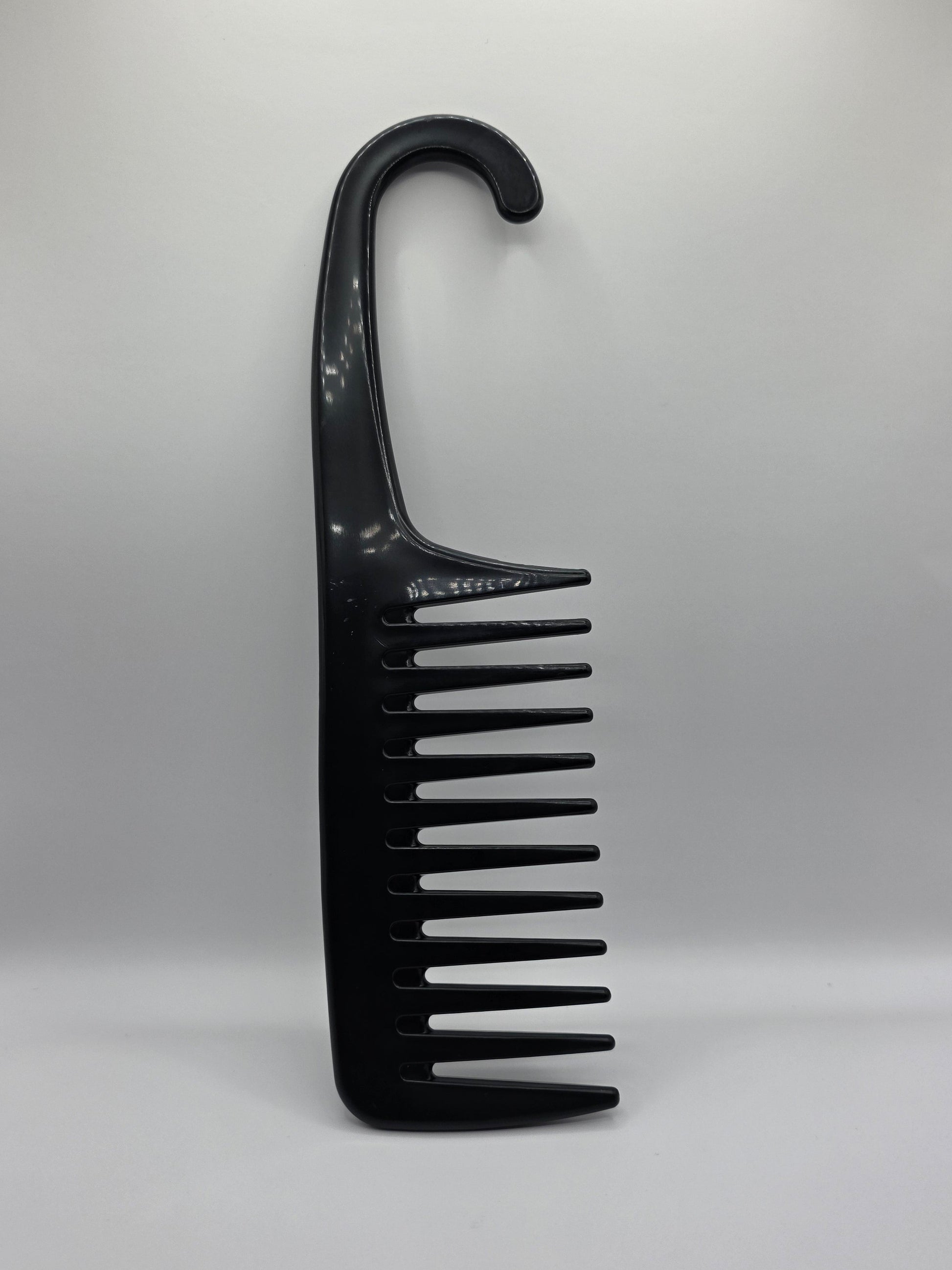 Meet the essential tool for frizz-free wash days: the wide-tooth comb. Its smooth, widely spaced teeth glide effortlessly through wet, conditioned hair, gently separating strands without snagging or causing breakage. It’s the simple secret to maintaining your natural curl pattern, evening out product distribution, and ensuring you get defined, healthy, and tangle-free curls every time!